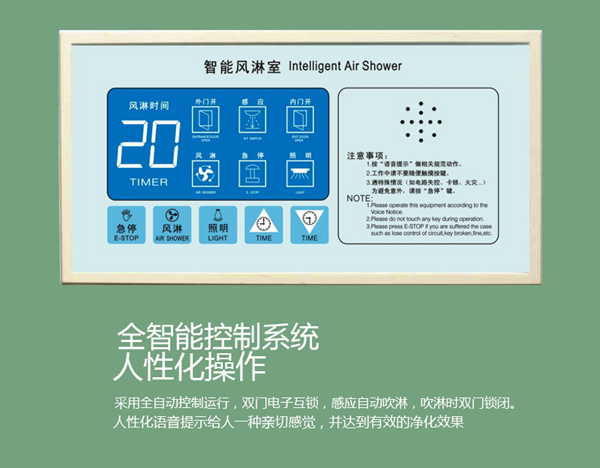 c、照明按鍵:使用照明按鍵,可開關(guān)風(fēng)淋室內(nèi)照明燈。此按鍵主要用于門磁失靈或燈具檢修時(shí)。