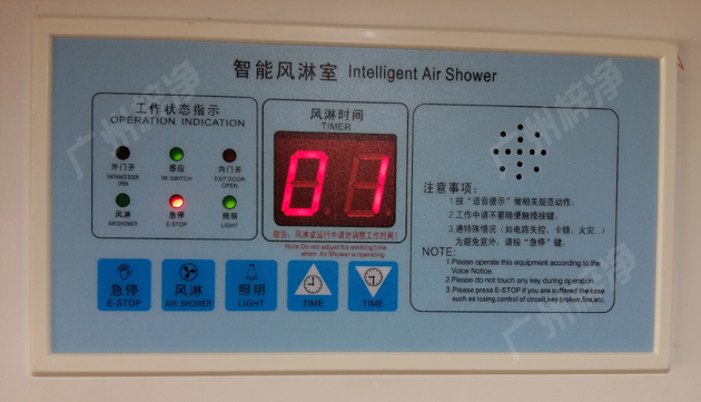 第一步:進入風淋室找到風淋室控制器面板(看下圖);