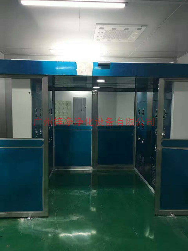 風(fēng)淋室是操作人員進(jìn)出的潔凈通道,經(jīng)初效過濾器和高效過濾器過后的潔凈空氣循環(huán)噴出,清除人體和物體表面的塵埃。減少帶入潔凈室的灰塵量,防止不 潔空氣由門浸入,以控制潔凈度的目的。