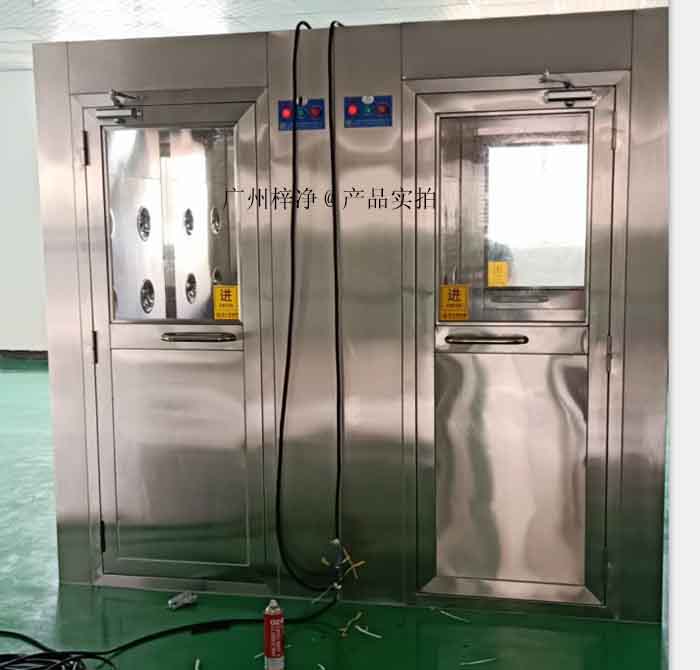 目前主流的是采用雙人風淋室,既能夠對人員進行風淋除塵又能夠對物料進行除塵。