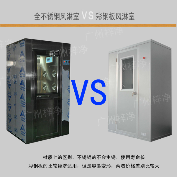 材質(zhì)上的區(qū)別,304不銹鋼是不會生銹,使用壽命長,彩鋼板的比較經(jīng)濟適用,但是容易變形,兩者價格差別比較大,看你們公司使用情況和要求。預(yù)算足夠的話還是建議用不銹鋼的,畢竟風淋室更換起來也比較麻煩。